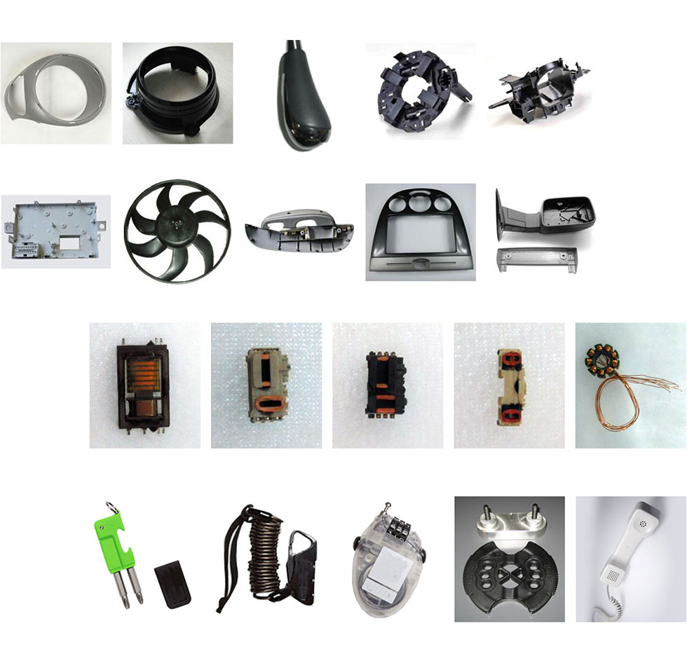 Automotive parts, coils, custom injection molding, die-casting, stamping and finishes.